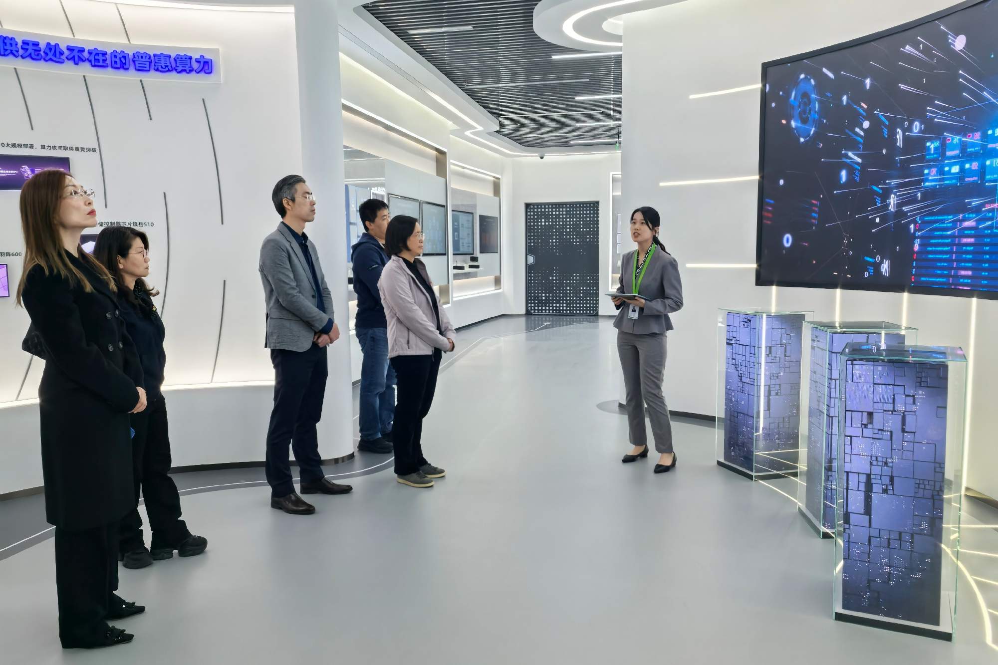 支部党员首先参观了平头哥产品展厅,系统了解了公司在数据中心芯片、人工智能芯片、存储芯片等领域的核心布局与技术成果。党员们认真聆听每一款产品的技术参数、应用场景与创新优势,详细询问芯片在电商、金融、医疗、智能驾驶等行业的规模化应用案例,对平头哥在芯片架构自研、能效优化、生态兼容等方面的突破表示高度赞赏。